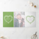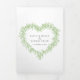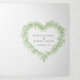 Mistletoe arte botánico dibujado a mano en un programa de bodas en forma de corazón con 2 fotos de página completa. Personalice este programa de bodas triples con sus propios detalles de la ceremonia de boda. Diseño de líneas botánicas simples en torno a sus propias iniciales de monograma en verde y gris sobre blanco. Hay disponibles otros colores y elementos bodas coincidentes. © Dibujo y diseño original de Sarah Trett exclusivamente para www.mylittleedenweddings.com en Zazzle.