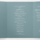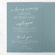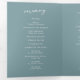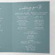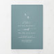 Este programa triple de boda verde azulado de monograma de moda boho es perfecto para un boda minimalista. El moderno diseño bohemio azul verde y colorido presenta una caligrafía rústica sencilla con un estilo único y clásico que recuerda a la playa, el océano y la costa de verano. Personaliza tu programa de bodas con tus iniciales, nombres, fecha y ubicación del boda, tu cita o letra favorita, orden de servicio, fiesta de bodas, mensaje conmemorativo de la memoria, mensaje de ceremonia sin conexión, nota de agradecimiento y foto.