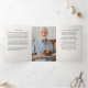 Modern celebration of life tri-fold funeral program with a photo collage design offers a heartfelt and uplifting way to honor a loved one’s memory through imagery and thoughtfully structured content. This design features multiple photo panels to showcase cherished moments alongside personalized details, including a full obituary, order of service, acknowledgments, and a selected prayer, poem or quote. With a clean white background, elegant black typography, and generous space for photos, this layout provides both clarity and warmth. The collage-style photo section creates a vibrant tribute that reflects the personality and joy of the person being remembered, while the structured interior panels guide guests through the ceremony with grace. Ideal for both traditional memorial services and modern celebrations of life, this program balances emotional expression with professional presentation. Fully customizable, it’s a meaningful keepsake that allows family and friends to reflect, remember, and celebrate a life well lived through words, images, and shared remembrance.