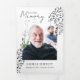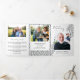 White trifold funeral program personalized with several photos of your loved one and the life they've led. The trifold memorial program has a music theme with hand-drawn illustrations of notes and a hand-drawn pattern of notes, perfect for musicians, composers, music teachers, and similar. Add an obituary, acknowledgements, a poem or prayer.