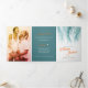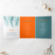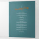 Programa de tres cuádruples de ceremonias de arte boda de arte de la acuarela verde azulada azul y naranja rojo. Hermoso programa de bodas ideal para vegetación tropical o subtropical o boda estilo playa de palmeras. Personaliza con tus propios detalles, incluyendo tu propia bienvenida, ceremonia, fiesta de boda, recuerdo y foto de agradecimiento y de parejas. También están disponibles las invitaciones y otros elementos coincidentes. © Original palmfrondes watercoloring pintura y diseño de Sarah Trett para www.mylittleedenweddings.com