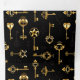 Patrón incomparable de llaves antiguas, doradas y de silueta sobre fondo negro.