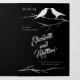 Dos elegantes cuervos encaramados en una rama son la manera perfecta de celebrar a tu boda gótico. Las siluetas de pájaro blanco se encuentran en un fondo negro que contrasta. También es genial para un boda de Halloween.