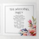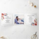 Rhododendron branch with peach-pink flowers floral wedding Tri-Fold Program. It features a rhododendrons branchadorned with peach-pink blooms and greenery at the corners, while the interior center displays a couple's photograph. The names are presented in decorative typography, and each panel is framed with thin black borders.