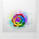 Rosa grande y floreciente con pétalos de arco iris sobre fondo blanco, pintado con salpicaduras de pintura colorida y brillante. 3.ª