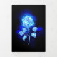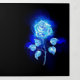 Rosa abstracta floreciendo de llama azul sobre fondo negro. Rosa de fuego.