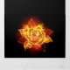 Rosa en llamas del fuego y la llama sobre fondo negro.