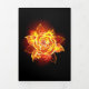 Rosa en llamas del fuego y la llama sobre fondo negro.