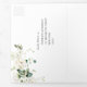 Elegante invitación a la boda floral de marfil blanco con un elegante ramo de blanco, marfil, rosa crema, hojas de eucalipto verde sabio y un elegante ramo acuático.