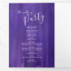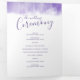 A six-page modern art purple wedding renewal program. Edit this wedding program with your own wedding renewal names, dates, introduction, ceremony wording, wedding party attendants, two photos of your first elopement or restricted wedding, and yours thanks. Original abstract washed watercolor art and design by www.mylittleedenweddings.com