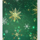 Programa Tríptico Xmas copos de nieve dorados sobre fondo verde