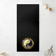 Joyería, oro y símbolo yin yang negro sobre fondo negro. Oro yin yang.