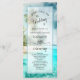This beautiful wedding program features a beautiful design with a watercolor background of a pristine tropical beach with turquoise waters and palm treel. The text is features elegant script calligraphy with space for the couple's name, wedding date, ceremony, bridal party, and a short thank you. Lovely, stylish, and chic, this program is perfect for a coastal or island destination wedding.