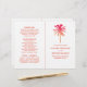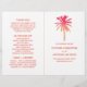 Estos programas de doble pliegue son perfectos para cualquier pareja que planee una celebración romántica de bodas en la playa. El diseño se compone de una palmera acuática tropical en tonos cálidos de color rosa coral, rojo y naranja sobre un fondo blanco limpio con una redacción editable en color. El diseño sencillo puede ser personalizado para su evento especial y será el orden perfecto para cualquier fiesta tropical temático, incluyendo duchas de novias, compromisos, duchas de bodas, fiestas de cumpleaños y mucho, mucho más.