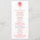 Estas plantillas de programa son perfectas para cualquier pareja que planee una celebración romántica de bodas en la playa. El diseño se compone de una palmera acuática tropical en tonos cálidos de color rosa coral, rojo y naranja sobre un fondo blanco limpio con una redacción editable en color. El diseño sencillo puede ser personalizado para su evento especial y será el orden perfecto para cualquier fiesta tropical temático, incluyendo duchas de novias, compromisos, duchas de bodas, fiestas de cumpleaños y mucho, mucho más.
