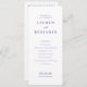 This is a minimalist style image featuring an elegant wedding ceremony program for Lauren and Benjamin. The design uses a clean, classic font in navy blue on a crisp white background, exuding sophistication and timeless charm. It lists the sequence of events during the ceremony with precision and grace, including the procession, exchange of vows, unity ceremony, and more. Perfect for setting a refined tone at any wedding event, this program inspires feelings of elegance and heartfelt celebration.