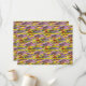El diseño que proporcionaste tiene un patrón formado por rayas horizontales de varios colores, entre ellas el amarillo, el verde, el púrpura y el rosa. Entre estas franjas de colores hay rayas blancas más delgadas. Cada franja de color está adornada con una secuencia de pequeños puntos que se separan uniformemente a lo largo de la franja. Los puntos aparecen en colores contrastantes a la franja en la que están, como puntos blancos sobre las rayas moradas y verdes y puntos negros sobre las rayas amarillas y rosas. Este patrón repetitivo crea una textura visualmente estimulante que se podría usar para fondos, textiles u otros elementos de diseño debido a sus colores vibrantes y secuencias rítmicas de punto.