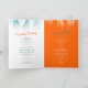 programa de ceremonias de boda de arte de la acuarela verde azulada verde azul y naranja tropical brillante. Hermoso programa de bodas ideal para vegetación tropical o subtropical verde azulada o boda estilo playa de palmeras. Personaliza con tus propios detalles. Hay invitaciones y otros elementos coincidentes disponibles. © Original palmfrondes watercoloring pintura y diseño de Sarah Trett para www.mylittleedenweddings.com