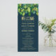 Diseño creativo boda con abundante follaje de mano dibujado a mano de manera moderna imitando la textura metálica. Tonos verdes, dorados, cobre, platino, turquesa, azul oscuro. Fondo azul profundo. Grabado dorado (el oro no es oro real, sino color). Fuentes modernas y simplificadas. Verdaderamente único, involucrado y elegante. Para bodas en otoño, bodas de verano, bodas en el jardín o cualquier tipo de boda moderna y elegante.