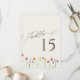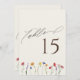 Esta carta, sencilla, moderna y vibrante, es perfecta para la cena de bodas o el almuerzo, sin importar la temporada. Las elegantes flores silvestres espaciadas son a la vez encantadoras y simplistas, con un toque sofisticado y elegante de tipografía cursiva manuscrita y serif. Disfrute de su boda en primavera, verano, otoño o invierno con nuestro encantador diseño colorido y minimalista. Este material es perfecto para el ambiente de su mesa, para asegurarse de que su temática sigue todo el camino a través de su recepción, ceremonia y fiesta. IMPORTANTE: Los números de tabla deben ordenarse individualmente. Los números de tabla no se rellenarán automáticamente.