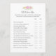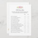Un juego divertido para la ducha de bebé es el juego de cuentos de las viejas esposas. Esta tarjeta de juego tiene flores rosas en la parte superior. Al revés hay un oso de peluche chica apoyado en un barril de miel mirando una abeja con plantillas.