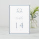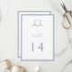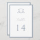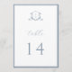 Elegante Escudo botánico monograma boda, tarjeta número de tabla. Escudo de inspiración vintage adornado con ramas botánicas. Características, diseño elegante de tipografía azul polvoriento estilo mezcla de guión y negrita. Tenga en cuenta que las tarjetas de número de tabla deben solicitarse individualmente.