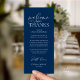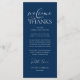 Make a heartfelt first impression at your wedding reception with this sophisticated "Welcome & Thanks" place card—designed to rest beautifully on each guest’s plate, in navy blue theme. Featuring graceful script typography and a timeless layout, this elegant card warmly greets your loved ones while expressing gratitude for sharing your special day. Ideal as a dual-purpose place card & welcome note—combine sentiment and function without cluttering your tables-cape. Designed for couples who value refined details, this card complements modern and luxe wedding themes. Print on premium card stock for a luxurious finish that guests will cherish (or even keep as a sweet keepsake!). Because love is best served with gratitude.