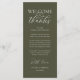Make a heartfelt first impression at your wedding reception with this sophisticated "Welcome & Thanks" place card—designed to rest beautifully on each guest’s plate in rustic olive green theme. Featuring graceful script typography and a timeless layout, this elegant card warmly greets your loved ones while expressing gratitude for sharing your special day. Ideal as a dual-purpose place card & welcome note—combine sentiment and function without cluttering your tables-cape. Designed for couples who value refined details, this card complements modern and luxe wedding themes. Print on premium card stock for a luxurious finish that guests will cherish (or even keep as a sweet keepsake!). Because love is best served with gratitude.
