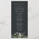 Nuestro programa de bodas de moda de invierno presenta sus detalles de la ceremonia con letras elegantes y clásicas, con sus nombres flanqueados por follaje de acuarela pintado en ricos tonos de verde cazador. Revertir muestra los miembros de la fiesta de boda con campos de texto fácilmente modificables. Coordina con nuestra colección de invitaciones a bodas de Winter Meadow. Utilice los campos de plantilla para agregar la información de la ceremonia y de la fiesta nupcial y, a continuación, vuelva a colocar los elementos si fuera necesario.