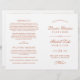El diseño formal del programa de ceremonia de boda de naranjas de terracota presenta una hermosa tipografía que combina un guión tradicional de caligrafía floreciente con letras clásicas de bloques. Incluye un acento de diseño de desplazamiento decorativo. El texto del personalizado puede ser totalmente personalizado para el día de tu boda. Estos programas de hojas plegadas llegan planos y requieren un plegado central. Por favor, compre nuestra colección de Bodas Naranjas de Terracota Clásico Elegante para coordinar diseños.