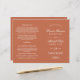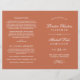 El diseño formal del programa de ceremonia de boda de naranjas de terracota presenta una hermosa tipografía que combina un guión tradicional de caligrafía floreciente con letras clásicas de bloques. Incluye un acento de diseño de desplazamiento decorativo. El texto del personalizado puede ser totalmente personalizado para el día de tu boda. Estos programas de hojas plegadas llegan planos y requieren un plegado central. Por favor, compre nuestra colección de Bodas Naranjas de Terracota Clásico Elegante para coordinar diseños.