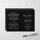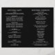 El diseño formal de los programas de ceremonias bodas en blanco y negro presenta una hermosa tipografía que combina un guión de caligrafía floreciente tradicional con letras en bloques clásicas sobre un fondo negro. Incluye un acento de diseño de desplazamiento decorativo. El texto del personalizado puede ser totalmente personalizado para el día de tu boda. Estos programas de hojas plegadas llegan planos y requieren un plegado central. Por favor, compre nuestra Colección de Bodas Clásicos Elegantes en Blanco y Negro para coordinar diseños.