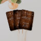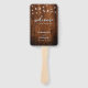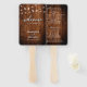 Este abanico de programa de boda rústico cuenta con un fondo cálido de textura de madera con luces de cuerda que brillan suavemente, creando una atmósfera acogedora y elegante. La combinación de letra manuscrita y fuentes sans-serif añade un toque sofisticado, lo que lo hace perfecto para bodas en graneros, al aire libre o de estilo campestre. La parte delantera da la bienvenida a los invitados con los nombres de la pareja y la fecha de la boda, mientras que la parte trasera proporciona un esquema de la ceremonia y detalles de la fiesta de boda organizados de manera hermosa. Unido a un mango de madera por practicidad, este abanico sirve como un recuerdo encantador y un accesorio funcional para celebraciones en clima cálido, asegurando que los invitados se mantengan cómodos mientras siguen los eventos del día especial.