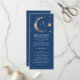 Programas de bodas celestes azul marino con información de la ceremonia y la fiesta de boda para invitados