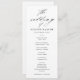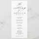 Un programa de boda fotográfica simple y de moda con detalles de caligrafía de escritura elegantes y texto clásico. La parte trasera tiene detalles adicionales. Haga clic en el botón de edición para personalizar de este diseño.