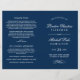 El azul marino profundo crea un telón de fondo sofisticado para este programa de ceremonia clásico, con tipografía blanca crujiente y serif que presenta "La Boda De" en elegante contraste. Un florecimiento decorativo blanco con volutas añade un toque de refinamiento. Las páginas interiores son totalmente personalizables para tu corte nupcial, orden de ceremonia y un mensaje personal de agradecimiento en la cubierta trasera. Los programas se imprimen en papel de peso de texto y llegan planos, requiriendo un simple doblez en el centro.