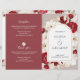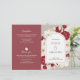 Un elegante programa de bodas con rosas rojas rubíes y flores blandas. Una hermosa manera de guiar a sus invitados a través de la ceremonia con estilo y gracia.