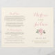 Una delicada rosa rosa con suaves toques dorados crea un programa de ceremonia bohemio discreto sobre un cálido fondo marfil. Sus nombres aparecen en romántica letra dorada, con la flor solitaria que añade un punto focal hermosamente simple. Las páginas interiores son totalmente personalizables para su cortejo nupcial, orden de ceremonia y un mensaje personal de agradecimiento en la cubierta posterior. Los programas se imprimen en papel de peso de texto y llegan planos, requiriendo un simple doblez central.