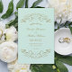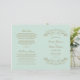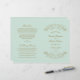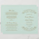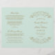 Los torbellinos y las flores decorativas enmarcan este elegante diseño de la ceremonia boda de inspiración vintage. Fondo verde de menta pastel con diseño de oro antiguo. Personaliza el texto del personalizado para tu fiesta nupcial, información de la ceremonia y mensaje de agradecimiento. Nota: estos programas de peso de texto llegan planos y requieren plegado para ensamblar.