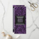 Plantilla de programa de boda elegante en morado y negro. Esta hermosa invitación de boda negra y morada se personaliza fácilmente para su evento simplemente eligiendo el botón "¡Personalízalo!" para comenzar a agregar los detalles de su evento, estilo de fuente, tamaño y color de la fuente, y redacción. Tenga en cuenta que todos los diseños de tarjetas e invitaciones que encontrará en Zazzle son gráficos impresos sin joyas reales, lazos, partes o piezas elevadas, grabadas o agregadas.