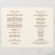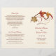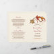 Diseño de programa de ceremonia de boda con tema otoñal con fondo marfil que presenta elegantes rollos y hojas en colores otoñales. Personalice el texto personalizado para su corte nupcial, información de la ceremonia y mensaje de agradecimiento. Nota: estos programas de papel de peso de texto llegan planos y requieren doblarse para ensamblar.