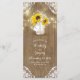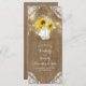 Programas de bodas rústicos de granero con jarra de albañil, aliento de bebé, girasoles, madera, encaje y románticas luces de cuerdas