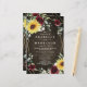 El diseño presenta un fondo de grano de madera de grano impreso con un marco geométrico de color dorado decorado con rosas rojas borgoñas, elementos florales de color rubí, girasoles, eucalipto y otras zonas verdes.