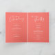 Programa de bodas de arte moderno de doble cara. Edite este programa de bodas con su propio nombre, fechas, redacción de la ceremonia, asistentes a la fiesta de bodas y gracias. Un programa sencillo pero elegante simplemente reemplaza el texto de ejemplo con sus propios detalles de información boda. Arte y diseño abstracto de coral original de www.mylittleedenweddings.com