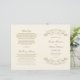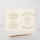Los torbellinos y las flores decorativas enmarcan este elegante diseño de la ceremonia boda de inspiración vintage. Fondo de marfil con diseño de oro antiguo. Personaliza el texto del personalizado para tu fiesta nupcial, información de la ceremonia y mensaje de agradecimiento. Nota: estos programas de peso de texto llegan planos y requieren plegado para ensamblar.