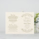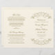 Los torbellinos y las flores decorativas enmarcan este elegante diseño de la ceremonia boda de inspiración vintage. Fondo de marfil con diseño de oro antiguo. Personaliza el texto del personalizado para tu fiesta nupcial, información de la ceremonia y mensaje de agradecimiento. Nota: estos programas de peso de texto llegan planos y requieren plegado para ensamblar.