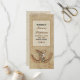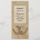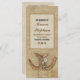 Elegantes programas de bodas con un fondo rústico de arpillera y acentos de encaje blanco. Perfecto diseño de programas para la temática rústica de la boda rural.
