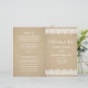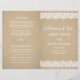 Los programas de hoja de boda presentan "Celebración del Amor" en escritura, un encantador diseño de borde ilustrado con flores blancas vintage y encaje punteado, y un fondo con apariencia de textura de papel kraft marrón rústico. Personalice el texto personalizado para su corte nupcial, información de la ceremonia y mensaje de agradecimiento. Nota: estos programas de papel de peso de texto llegan planos y requieren doblarse para ensamblarse.