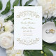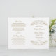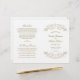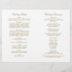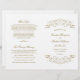 Los torbellinos y las flores decorativas enmarcan este elegante diseño de la ceremonia boda de inspiración vintage. Fondo blanco con diseño de oro antiguo. Personaliza el texto del personalizado para tu fiesta nupcial, información de la ceremonia y mensaje de agradecimiento. Nota: estos programas de peso de texto llegan planos y requieren plegado para ensamblar.