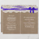 La rústica colección de bodas de la proa azul es un impresionante diseño con un bonito efecto rústico de burlap con un romántico toque de encaje blanco vintage y una impresionante proa azul. Estos programas pueden ser personalizados para su ocasión especial y harían la plantilla perfecta para bodas, duchas de novias, fiestas de compromiso, fiestas de cumpleaños y mucho, mucho más. *Tenga en cuenta que Zazzle sólo vende productos impresos para que este artículo no tenga ningún material de color burlap, encaje o cinta/ arco.